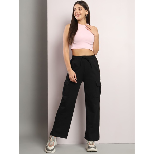 Women Black Solid Wide Leg Fit Track Pants