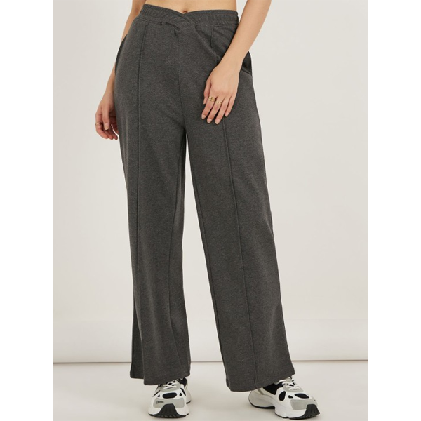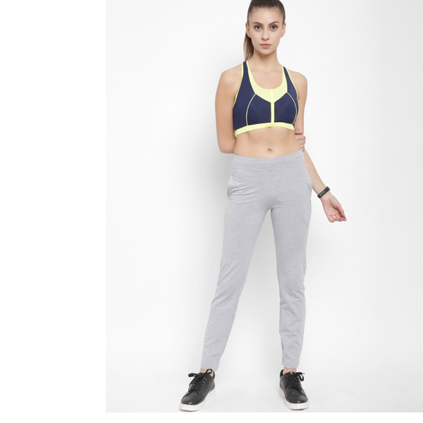 Women Grey Melange Solid Slim-Fit Track Pants