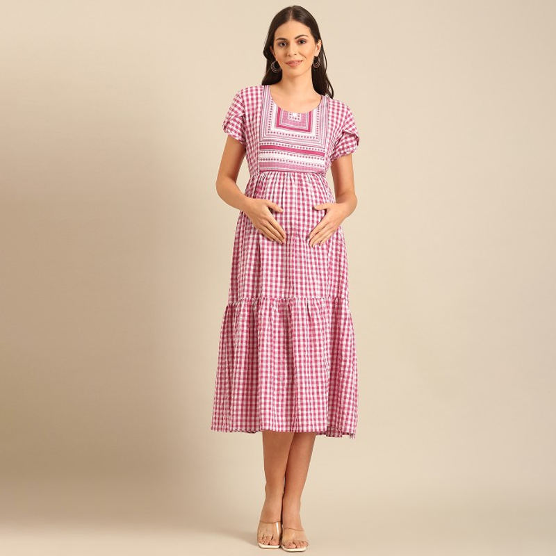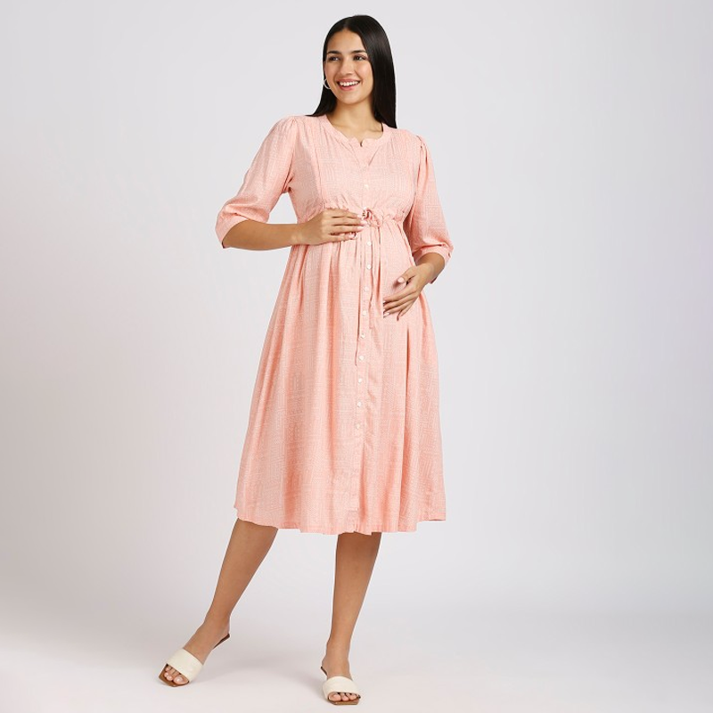 Women Printed Maternity Fit & Flare Midi Dress