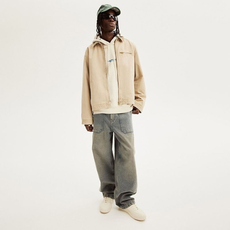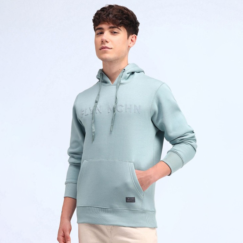 Men White & Navy Blue Colourblocked Hooded Sweatshirt