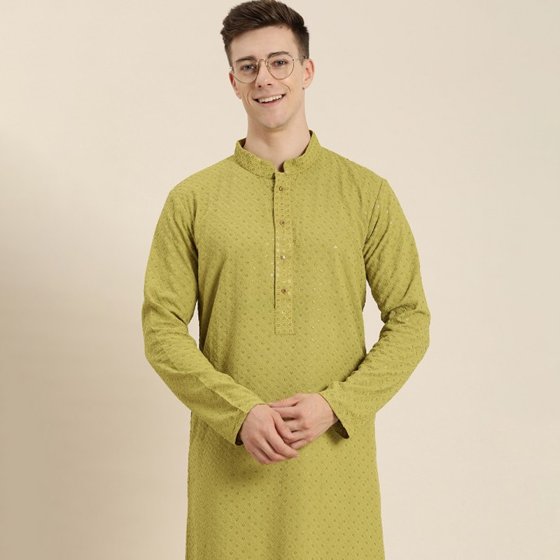 Men Ethnic Motifs Embroidered Chikankari Kurta