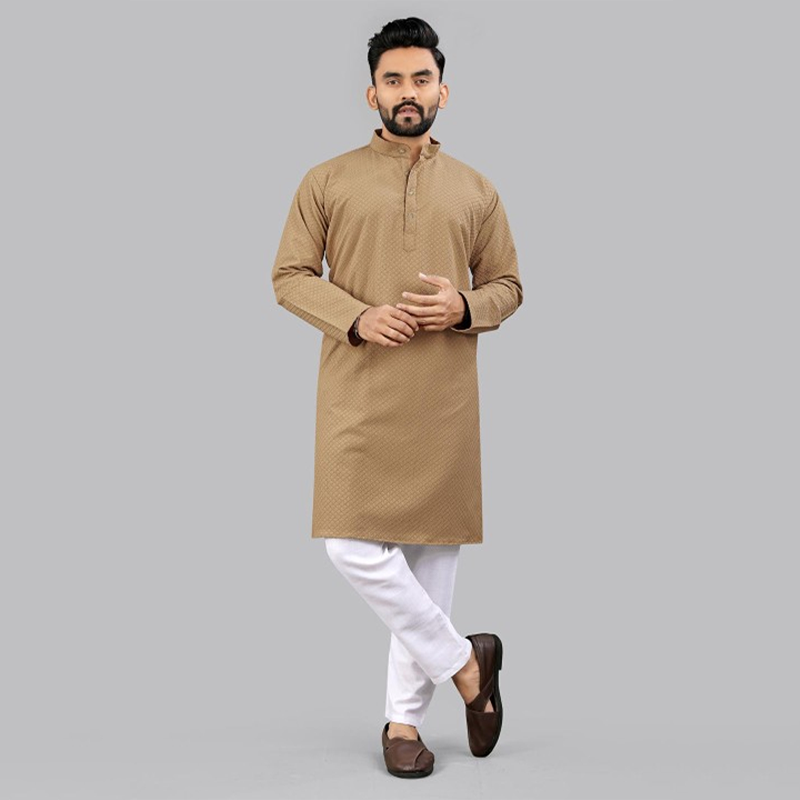 Thread Work Dobby Mandarin Collar Pure Cotton Straight Kurta