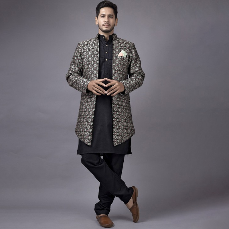 Men Ethnic Motifs Woven Design Mandarin Collar Indowestern Sherwani Set