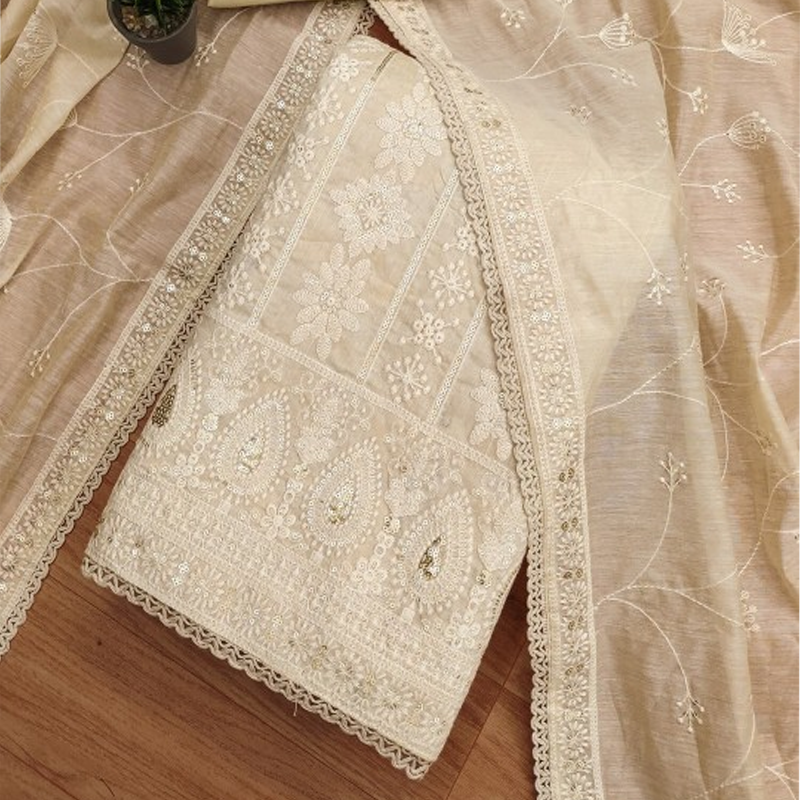Floral Embroidered Sequinned Chanderi Unstitched Dress Material